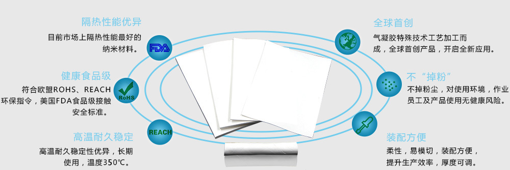 一種新型的氣凝膠隔熱片,全球領先的納米技術專為航天軍工、高端醫療設備、高端半導體設備、HNB電子煙等行業隔熱保溫而開發,超低熱導率、隔熱性能更優異、健康環保不"掉粉",長期耐高溫,超長使用壽命、符合ROHS/ REACH/ PFAS 環保指令及FDA食品級接觸安全標準。
